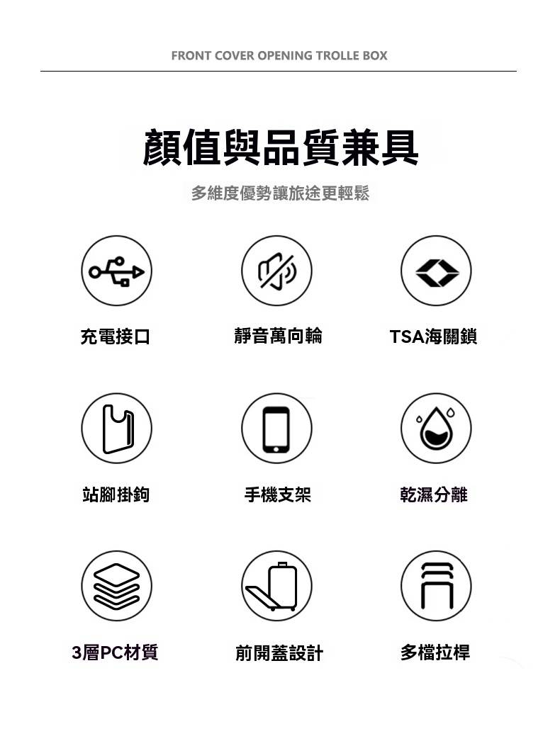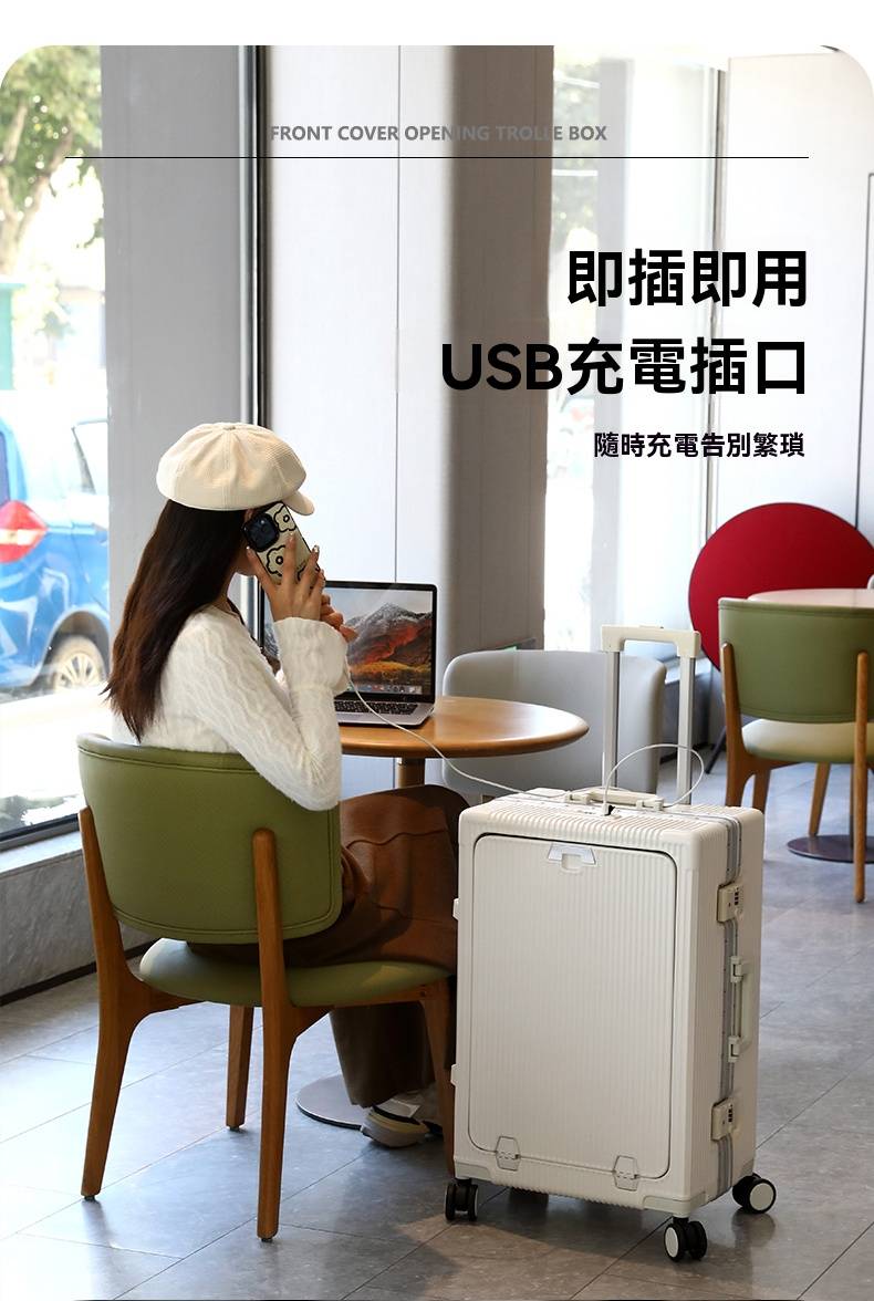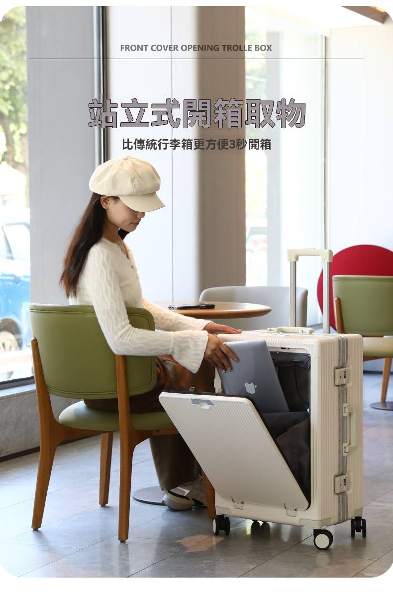 7分鐘前有了這個前開蓋行李箱,真的解放雙手又避免尷尬,太方便啦! - 20寸-加強加厚鋁框款 NT$1698