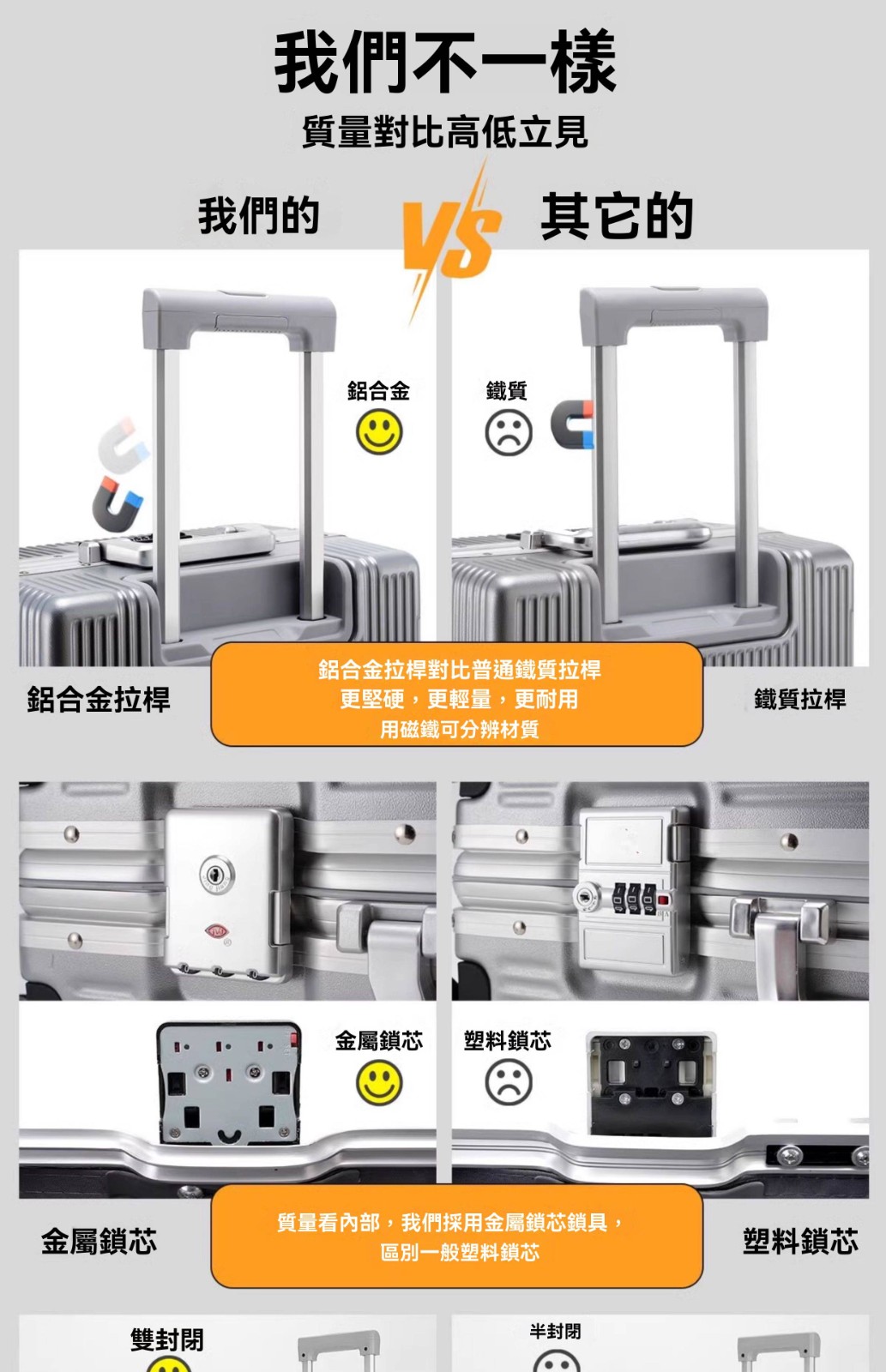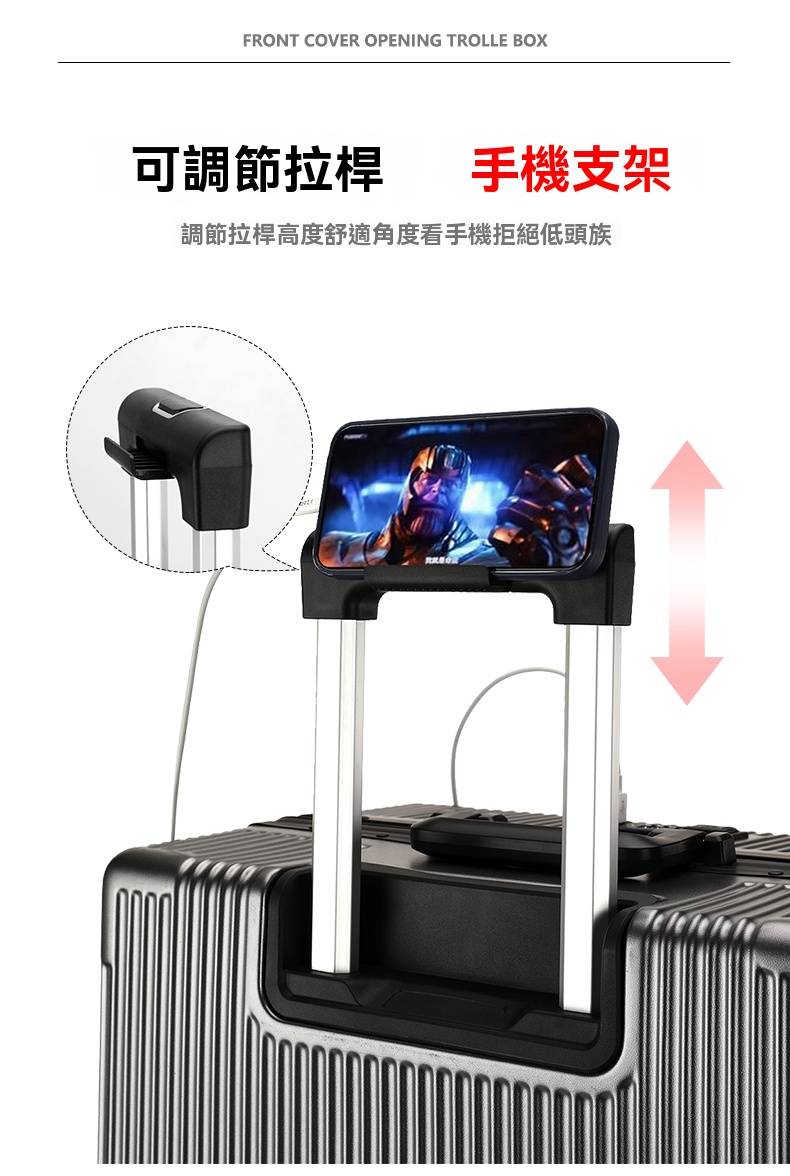 15分鐘前有了這個前開蓋行李箱,真的解放雙手又避免尷尬,太方便啦! - 24寸-加強加厚鋁框款 NT$1798