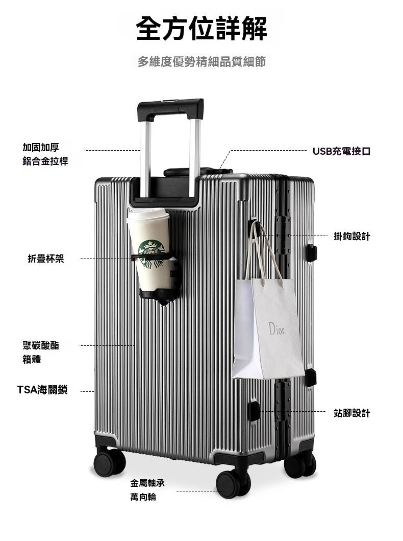 12分鐘前有了這個前開蓋行李箱,真的解放雙手又避免尷尬,太方便啦! - 24寸-加強加厚鋁框款 NT$1798