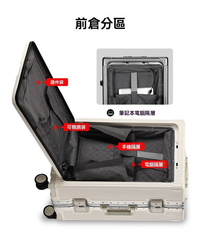 4分鐘前有了這個前開蓋行李箱,真的解放雙手又避免尷尬,太方便啦! - 24寸-加強加厚鋁框款 NT$1798