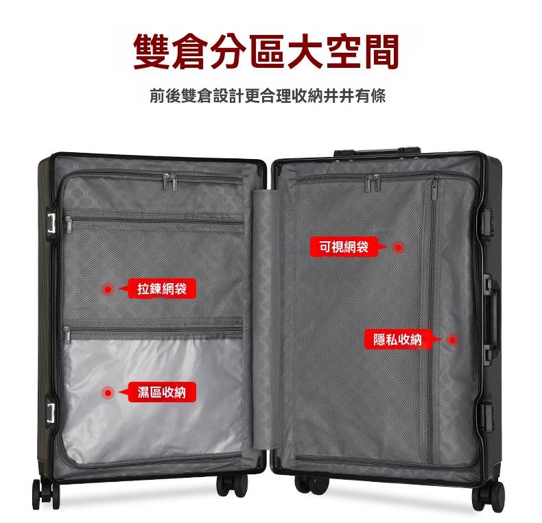 25分鐘前有了這個前開蓋行李箱,真的解放雙手又避免尷尬,太方便啦! - 26寸-加強加厚鋁框款 NT$1898