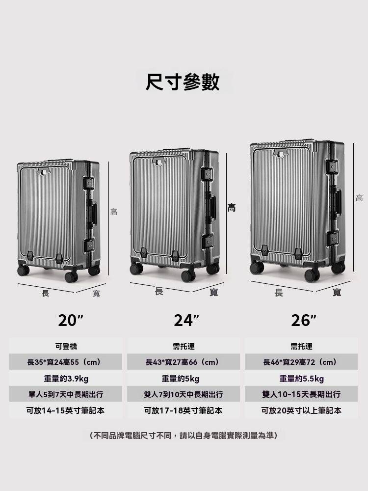 5分鐘前有了這個前開蓋行李箱,真的解放雙手又避免尷尬,太方便啦! - 26寸-加強加厚鋁框款 NT$1898